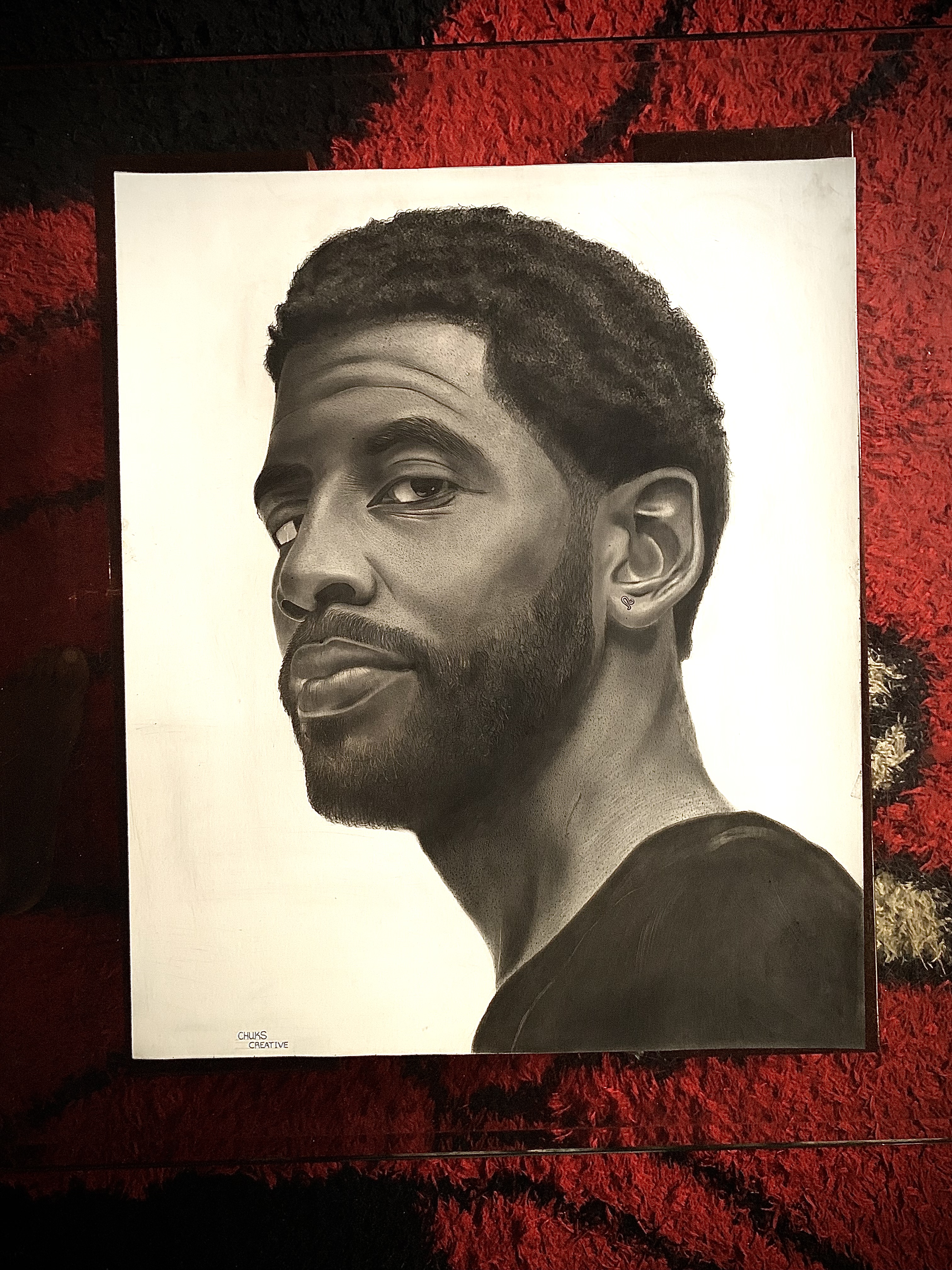 16:22 pencil drawing of NBA point guard Kyrie Irving